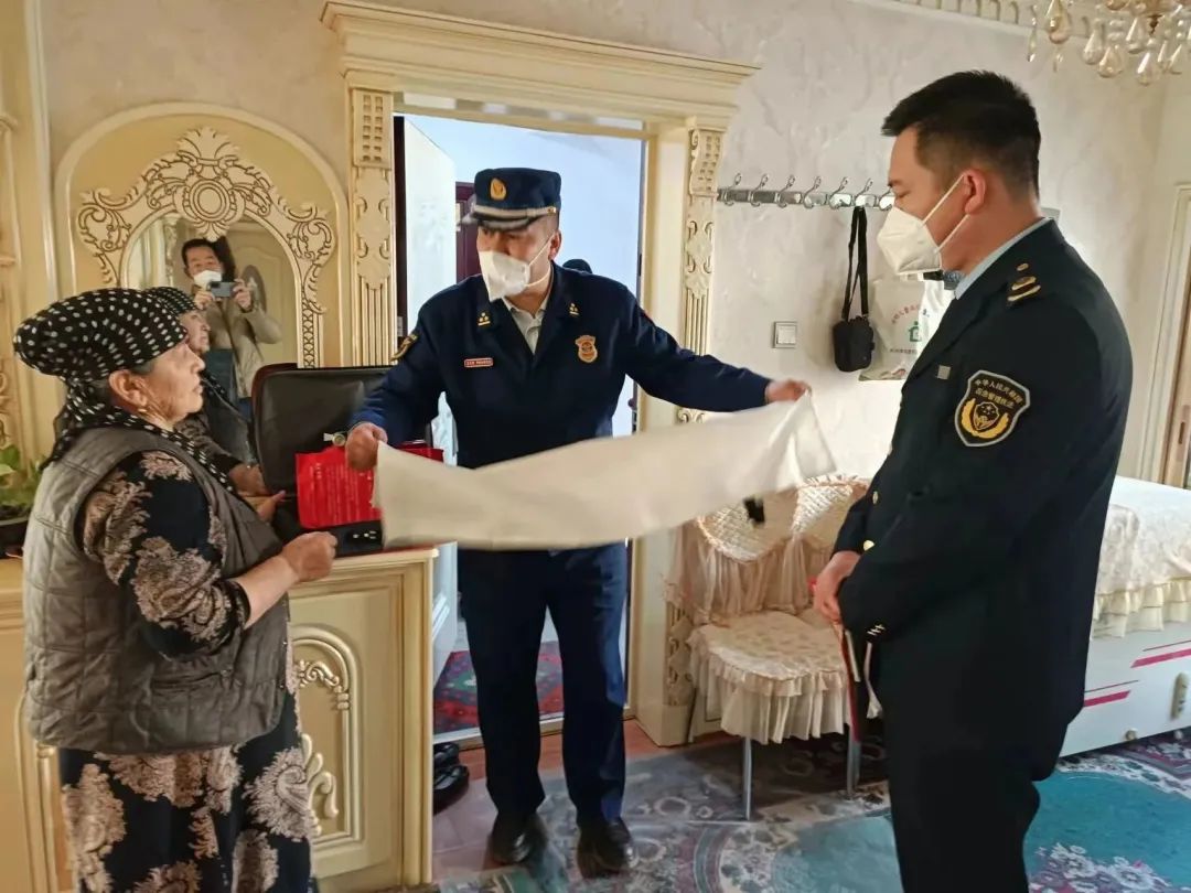 博乐市青得里街道东方红社区居民吴金芬说:“我们社区的工作人员给我们送来了应急包,有防火、防气的消防工具,对我们的帮助很大,这么冷的天来门上门服务帮助我们,谢谢关心。”
