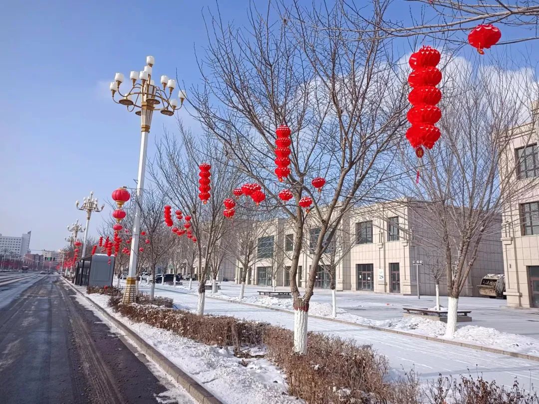 元旦美化街景自12月20日开始,计划12月30日前全部结束。4组共30余人在博乐市主次街道挂灯笼,预计要挂13万株。