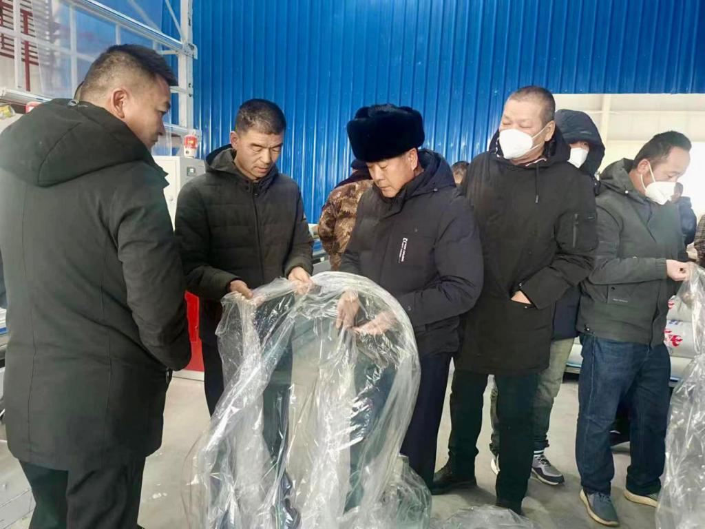 随后,呼热布呼村党支部书记王海军带领大家参观塑料厂的建设以及生产情况,并介绍到“塑料厂生产年产量达2000吨,足以供给达勒特镇20万亩棉田的用膜。”