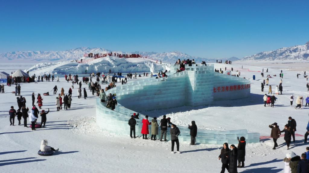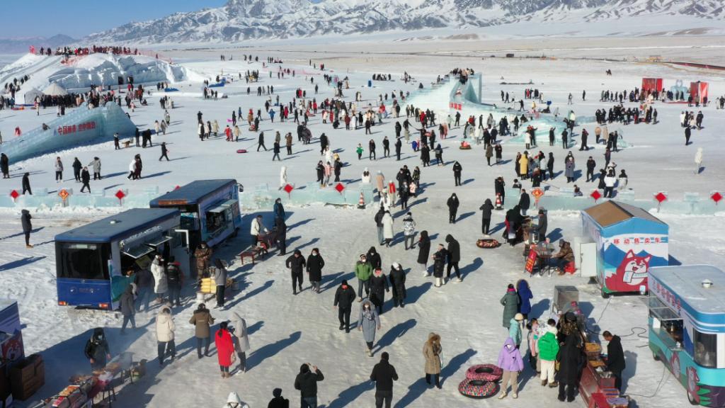 春节期间,赛里木湖景区开展了一系列冰雪季活动,打造了冰雕乐园、无动力乐园、非遗演出区、冰瀑区、雪人王国、网红打卡点、美食展等,吸引众多游客纷至沓来。