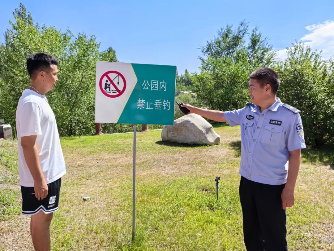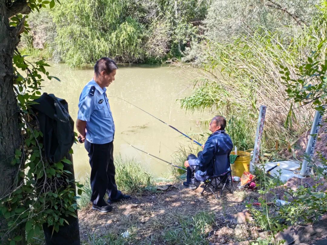 “请不要在河边钓鱼,在河边垂钓存在极大的安全隐患,稍不留意就有可能站不稳而失足落水,请尽快离开!”社区民警在日常巡河时发现河边有未在规范区域内垂钓的居民,都会进行劝阻,并宣传防溺水知识,在保护居民生命安全的同时也增强了居民的安全防范意识。