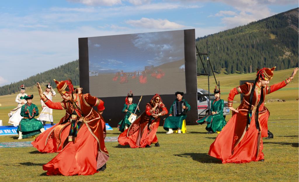 博乐市是该直播活动的第二站,此次聚焦的西海草原,每到夏天,牧草丰茂,毡房点点,牛羊遍野,驼马成群,一望无际的绿色原野灵动唯美,游牧民族世代传承的草原文化绚丽多彩。
