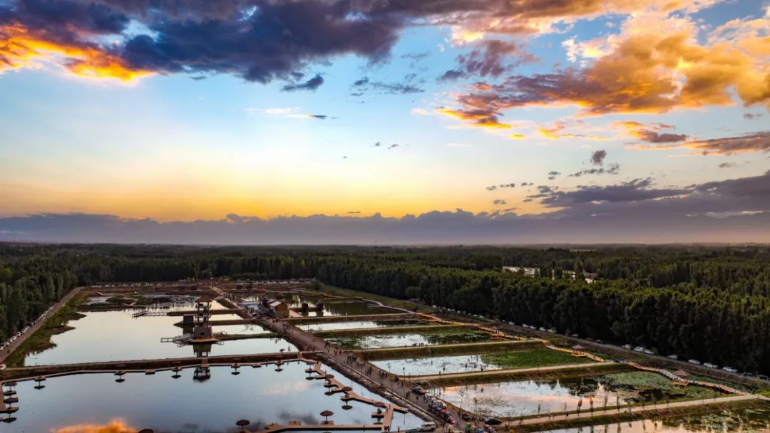 青得里镇克日木村是博州乡村振兴重点示范村,2022年,为了打造特色旅游示范区,青得里镇建设了水上田园综合体项目——清荷渔湾。项目总占地420亩,水域面积385亩,建设有荷花池、垂钓池、亲子乐园、餐饮住宿区、停车场等,其中荷花种植面积达200亩。