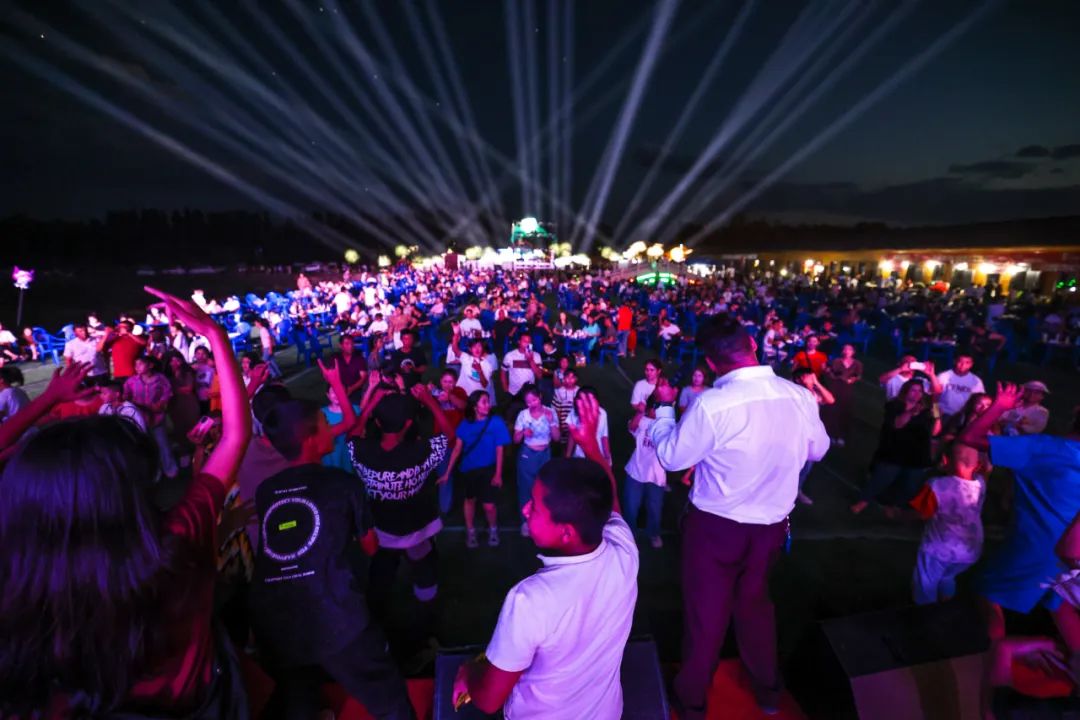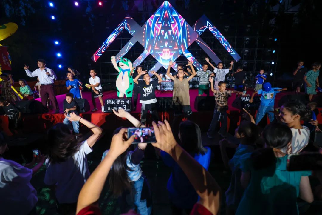 当晚21时,龙虾音乐节拉开帷幕,一边是爵士舞、都塔尔弹唱、说唱表演等精彩纷呈的节目,一边是龙虾、烧烤、网红小吃等各类美食,5000余名群众享受着“味蕾+视听”的双重盛宴。23时许,火凤凰涅槃表演让现场氛围达到高潮。
