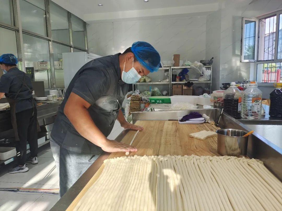 8月6日,迎着清晨第一缕阳光,迎宾社区大食堂内各种类型的早餐陆续出锅了。豆沙饼、韭菜盒子、鸡蛋葱花饼、奶茶、豆浆……来吃早餐的居民络绎不绝。中午既有新鲜的小炒,也有新疆传统美食拌面、抓饭,有荤有素,有酸辣浓香也有清淡鲜美,营养齐全的同时,满足不同居民的味蕾需求,同时环境整洁干净,设施齐全。