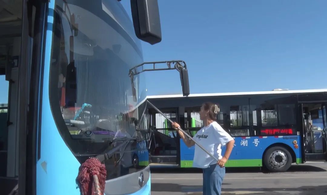 1路公交驾驶员买尔哈巴·外力说:“我是阳光公交公司一号线的司机,一趟车程是53分钟,到终点站有十分钟休息时间,这期间就只够打扫车厢外部和内部的卫生,虽然自己没时间休息,但是看到乘客坐上干净的公交车,我们非常高兴。”