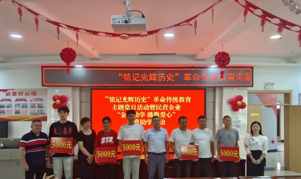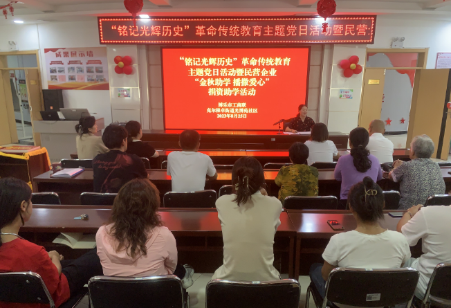 博乐市克尔根卓街道光博苑社区联合大党委成员单位博乐市工商联举行“铭记光辉历程”革命传统教育主题党日活动暨民营企业“金秋助学,撒播爱心”捐资助学活动。
