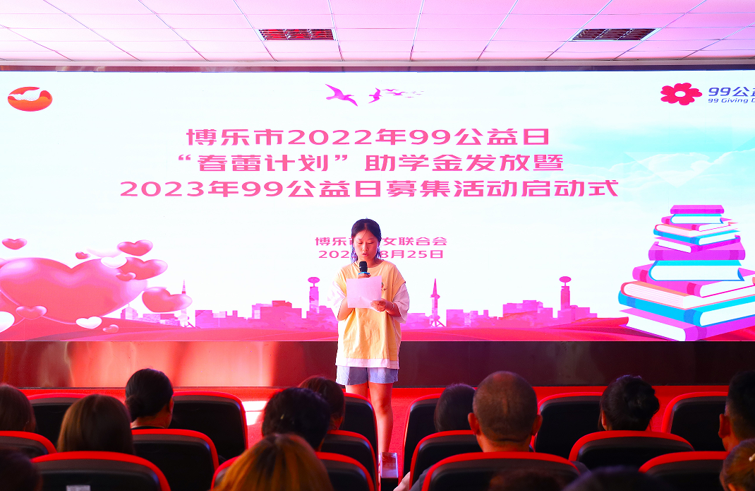 爱心点燃希望,帮扶成就梦想。近日,博乐市2023年“99公益日春蕾计划”助学金发放仪式在博乐市第九中学举行,为31名学生发放15万元助学金。