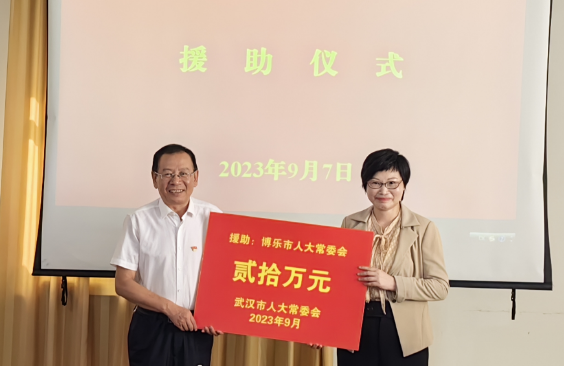 座谈最后,武汉市人大常委会向博乐市人大常委会援助二十万元工作经费。