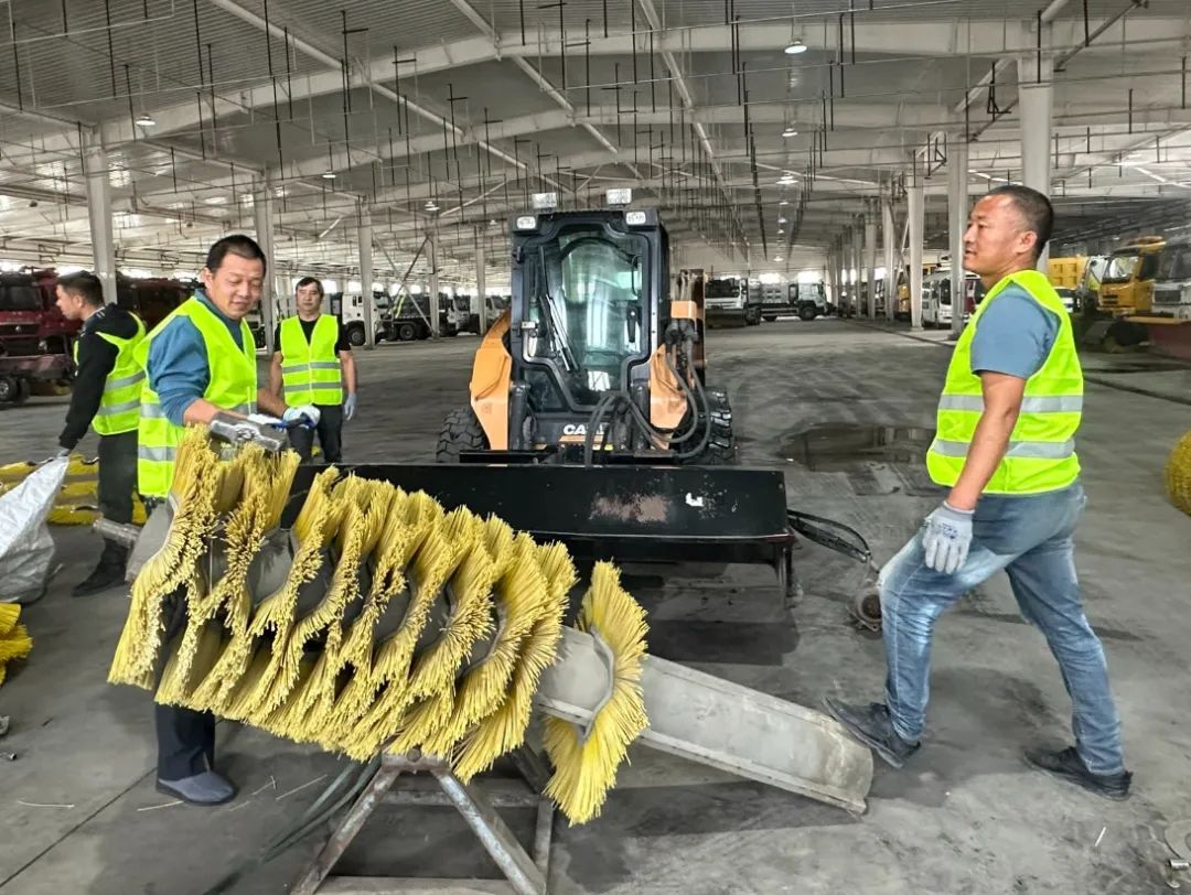 据了解,博乐市市容环境卫生服务中心现有大型双桥滚刷车、小型滑移机、多功能扫路车、大型铲车、大型平地机、大型撒布机等清雪机械设备70台。从9月上旬开始,工作人员就加班加点,对清雪机械设备进行滚刷安装、调试、全面维修养护,确保全部清雪设备能正常投入使用。