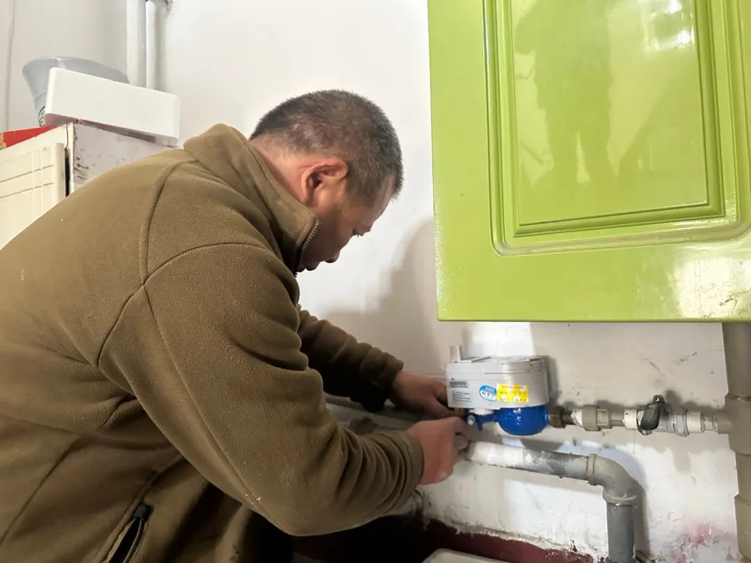 11月8日,在博乐市顾里木图街道北郊社区金域小区3号楼一单元,博乐市自来水有限责任公司的工作人员正在为居民免费更换智能水表,拆卸、组装、测试......在工作人员的相互配合下,一个个崭新的智能水表在楼道管道“安家落户”。居民玛依拉·哈斯木就是这项工作成果的受益者之一,新水表足不出户便可缴费的优点使她特别开心。