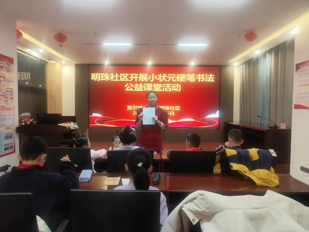 博乐市克尔根卓街道明珠社区党总支书记朱珍珍表示:“开展公益课堂为辖区未成年人提供了一个学习、交流的平台。硬笔书法公益课堂,既培养了青少年良好的书写习惯,提高书写水平,又能让青少年们养成细致、专注、沉着、持久的学习品质。”