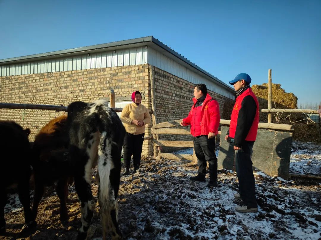 12月14日,博乐市农业农村局联合市林草局工作人员、阿勒热托海牧场分管畜牧领导及牧业村队干部前往俗称“冬窝子”的冬牧场库色木切克看望慰问牧民,为他们送去党和政府的关怀与温暖。