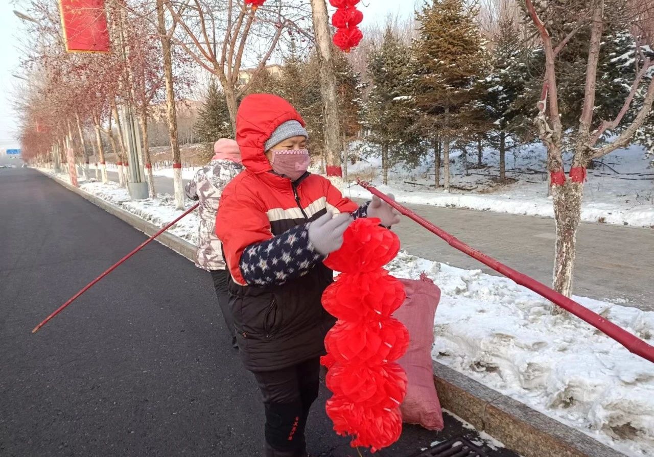 12月26日,记者在博乐市文化路州直机关综合楼附近,看到工人师傅正在路边安装红灯笼,装点城区的大街小巷,为城市增姿添彩。