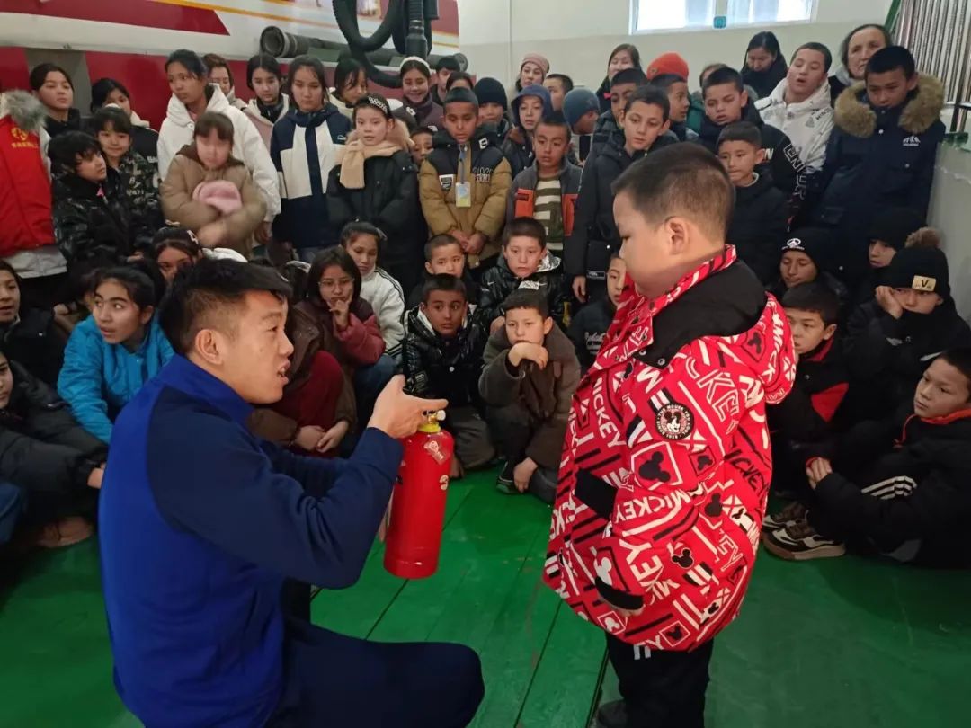 近日,博乐市青得里镇未成年人保护工作站利用寒假组织青得里镇定吉格村、塔木根赞格村的58名中小学生,走进博乐市健康路消防救援站开展假期社会实践活动,和消防员零距离学习消防知识,增进假期消防安全意识,提升逃生自救能力。