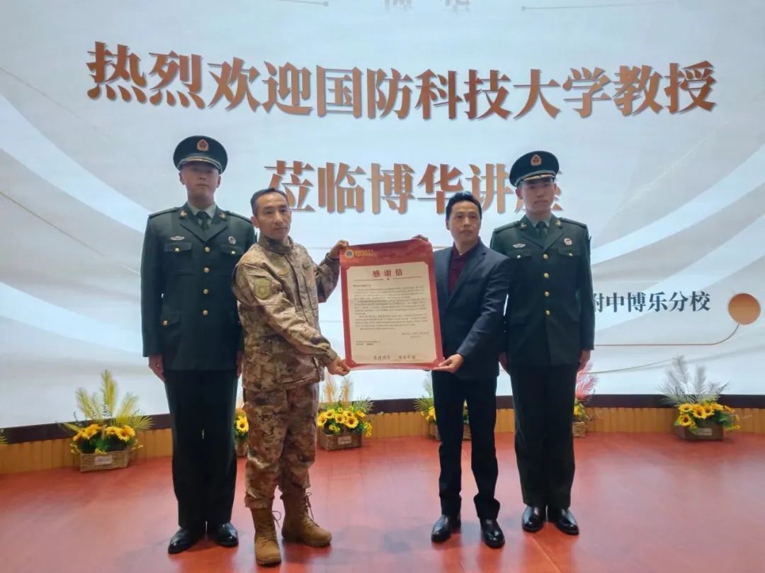 活动现场,蒋瑜教授为学校赠送了国防科技大学的感谢信。信中对博华学子的家国情怀与责任担当表示高度的肯定,并说明这都来自学校的悉心培养,国防科技大学向该校长期以来坚守教书育人初心,潜心立德树人实践致以崇高敬意。在场的全体博华学子心潮澎湃,掌声不断。