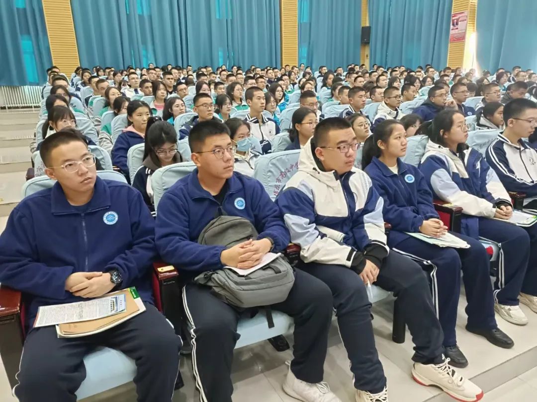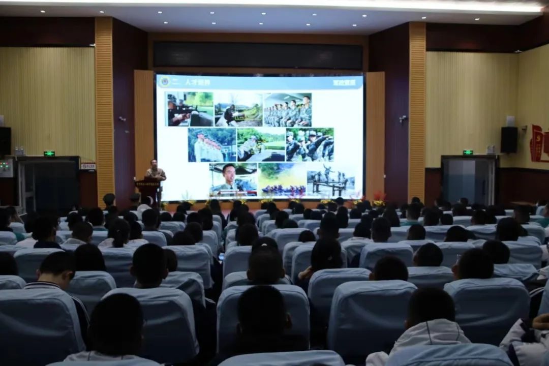 博乐市高级中学华中师大一附中博乐分校2023届毕业生、现国防科技大学学员黎旭展、周奎羽同学,学校相关负责人及300多名优秀博华学子参加聆听。