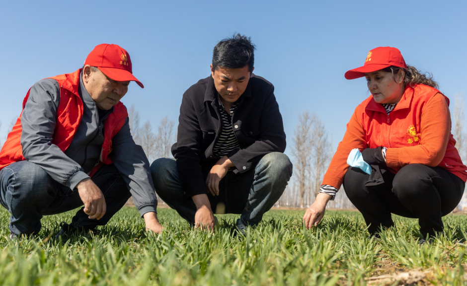 今年是博乐市小营盘镇冬麦种植户王建疆第一年种植冬麦。在王建疆的冬麦地里,技术人员正对他的冬麦进行现场技术指导。当前,正处于春季冬麦田间管理的关键阶段,技术人员的到来也让他对今年冬麦的产量更有信心。
