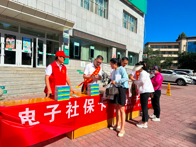 6月21日,博州、博乐市社会保险中心联合中国农业银行博州分行开展以“@电子社保卡 享数字化服务”和“社银合作 社保业务贴心办”为主题的社保服务宣传活动。为群众提供便捷、高效的服务为理念,拓展社保服务渠道,扩大社银合作范围,进一步推进社保卡应用推广工作,提高电子社保卡激活率及社银一体化合作深度。