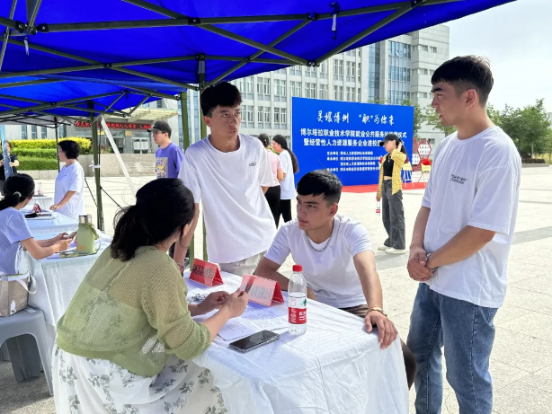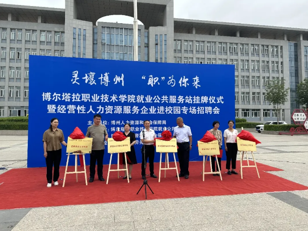6月25日,灵壤博州·“职”为你来-就业公共服务博尔塔拉职业技术学院站挂牌,活动现场同步举办经营性人力资源服务企业进校园专场招聘活动。