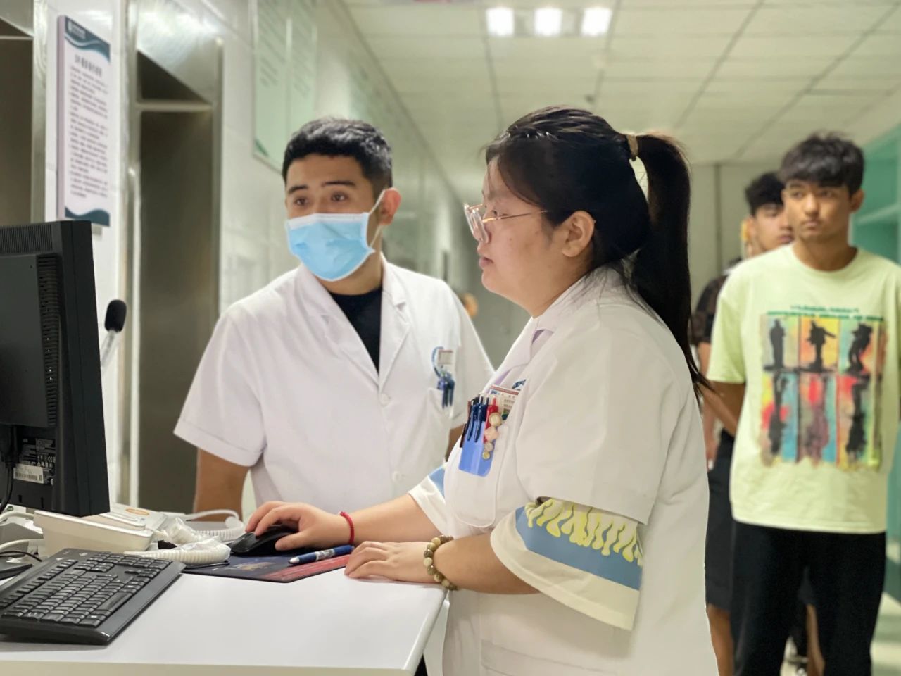 在博乐市中西医结合医院(博乐市人民医院)健康管理中心,体检工作正如火如荼地进行。数百名怀揣着从军报国梦想的应征青年,在工作人员的指引下,有序地完成了包括外科、内科、眼科、口腔科、心电图、B超等多个项目的检查。