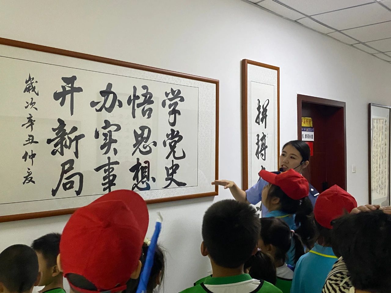 小朋友们在警察姐姐的讲解和互动交流中,参观了市公安局的警史荣誉室、书画室、书画长廊和图书室。在荣誉室看到人民警察誓词、听到警史、看到奖牌和照片时纷纷肃然起敬;在书画室和书画长廊看到精彩绝伦的书法作品与美术作品感叹不断,夸赞声此起彼伏;在图书室则如饥似渴地读起书来,遇到疑惑之处会积极地问警察姐姐和警察叔叔。
