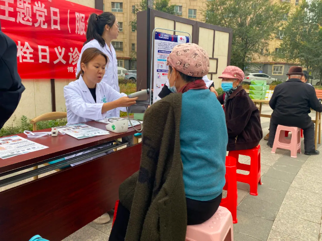 同时,医护人员进行现场问诊,为居民们测量血压、血糖,并详细询问居民的身体状况和过往病史,结合过往病史分析病情,给予专业的治疗建议和科学的健康指导。