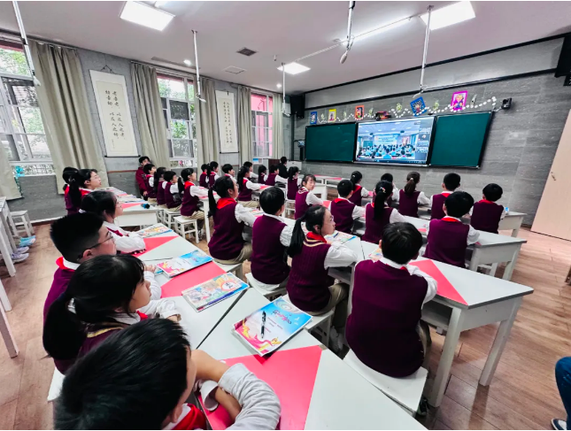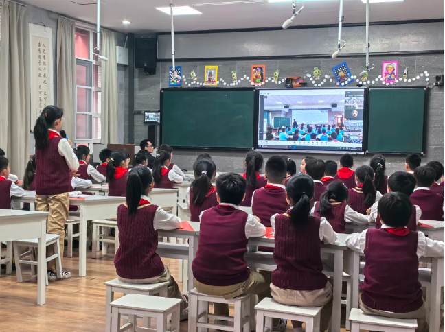 在这堂特殊的课堂上,两地的孩子们还通过观看视频、两地合唱等形式,进一步加深了彼此之间的交流与互动。在阅读分享和交流体会的过程中,中华精神和传统文化以一种可触可感的方式充分展现出来,深深打动了每一个孩子的心灵。博乐市第一小学援疆校长易玲介绍,学校一直以来高度重视学生的爱国主义教育和铸牢中华民族共同体意识的培养。此次“跟着课本话铸牢”主题阅读空中课堂活动,正是学校积极探索创新教育教学方式的一次有益尝试。通过这种方式,不仅打破了地域限制,实现了优质教育资源的共享,还为两地学生搭建了一个相互学习、相互交流的平台,让他们在共同学习中增进了彼此之间的了解和友谊,进一步加强了民族团结教育。
