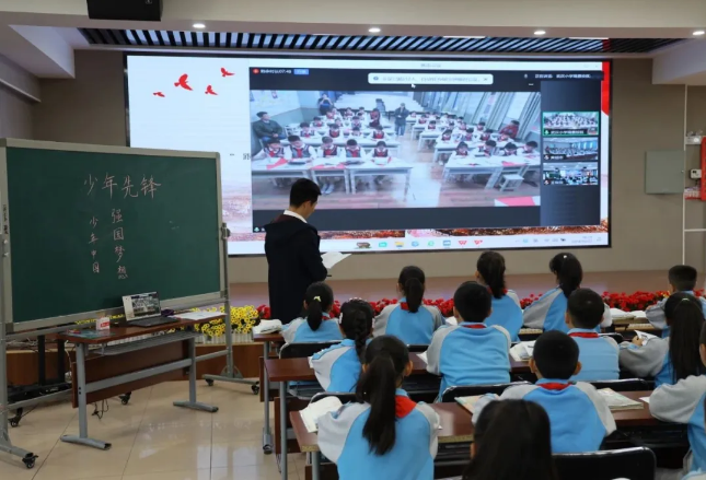 10月22日,博乐市第一小学举办了一场题为“少年先锋”的空中主题阅读活动。援疆教师黄翘志借助现代网络技术,成功地让博乐市第一小学与远在三千多公里外的武汉小学瑞景校区的孩子们跨越了空间的距离,紧紧牵起了手。他们一同从课本出发,在历史的长河中遨游,在知识的海洋里探寻,共同树立强国梦想,勇担强国责任。