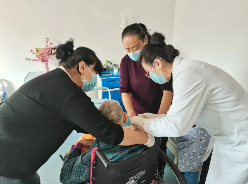 “上门接种既方便又安心,感谢政府对我们老年人的关爱。”博乐市爱康康养中心王秀说。
