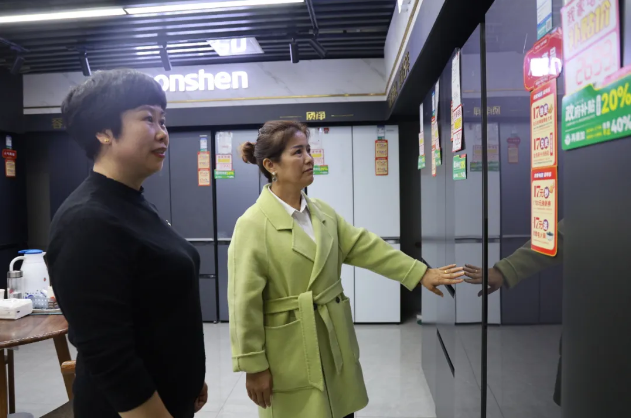 以旧换新政策补贴的实施,不仅让消费者享受到了“真金白银”的实惠,也进一步推动了实体家电产业的销售额回升。“双十一”这天,记者走进我家电器管理有限公司博乐分公司,“以旧换新”的宣传牌放在入口显眼位置,商品根据能效或水效的不同等级张贴了补贴价签,具体能补贴多少金额,顾客一目了然。