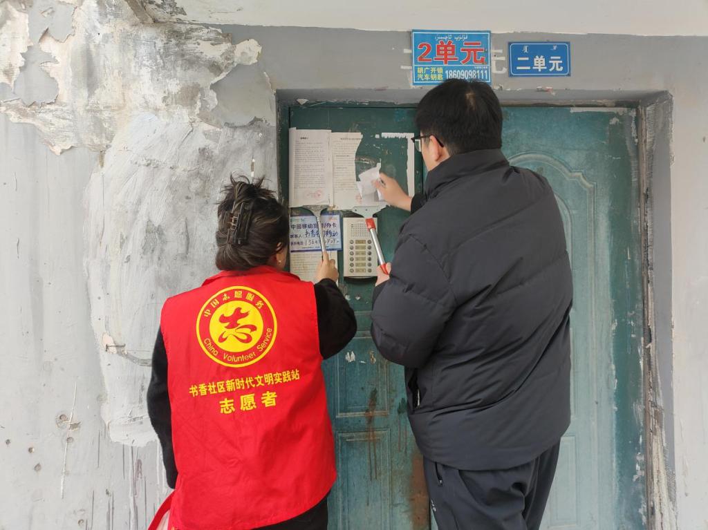 “同志们分两组,一组进老人家里打扫卫生,一组跟着我清理楼道小广告”书香社区党员孙宝娟边说边给大家分扫帚、抹布和铲子。志愿者们对美居苑小区“牛皮癣”问题突出的区域从墙面、电线杆到楼道角落展开地毯式清理。