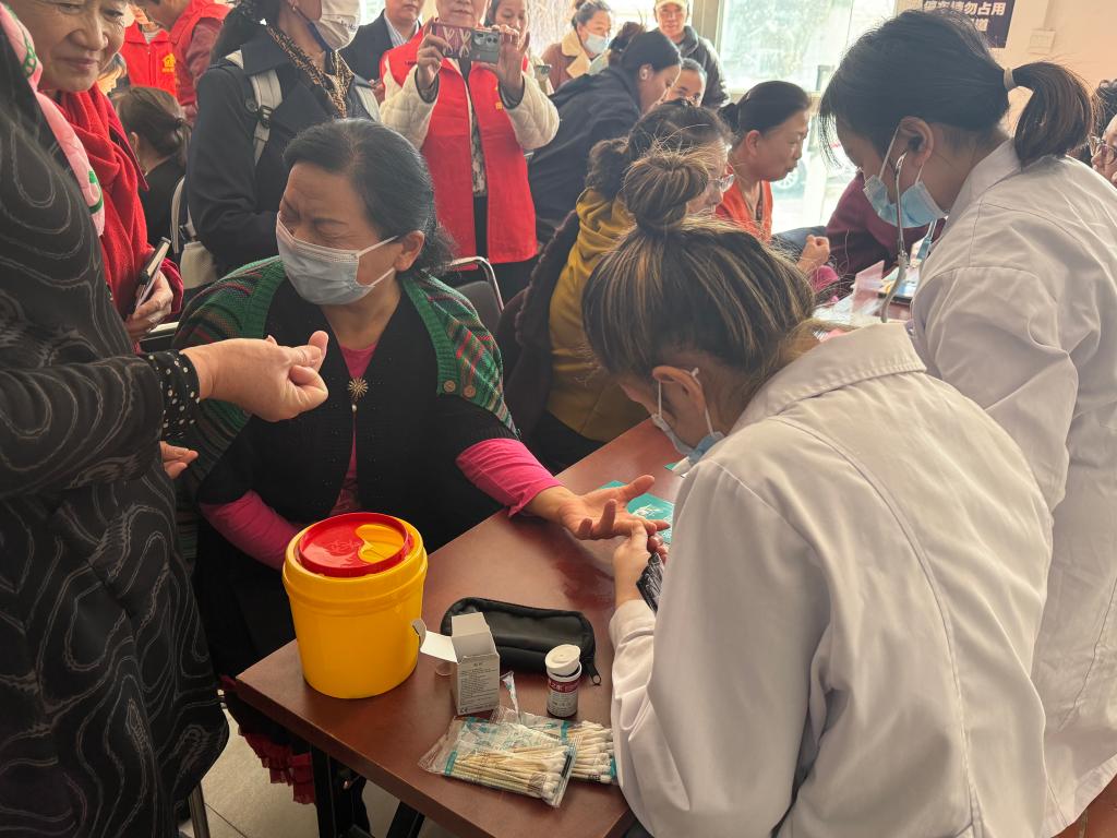 不远处的测血压血糖区域,医护人员认真地为居民们测量数据,并详细记录。他们一边操作,一边向居民讲解血压、血糖的正常范围以及日常饮食、运动等方面的注意事项。何小英感激地说:“这样的检查太及时了,让我对自己的身体状况有了更清楚的了解。”