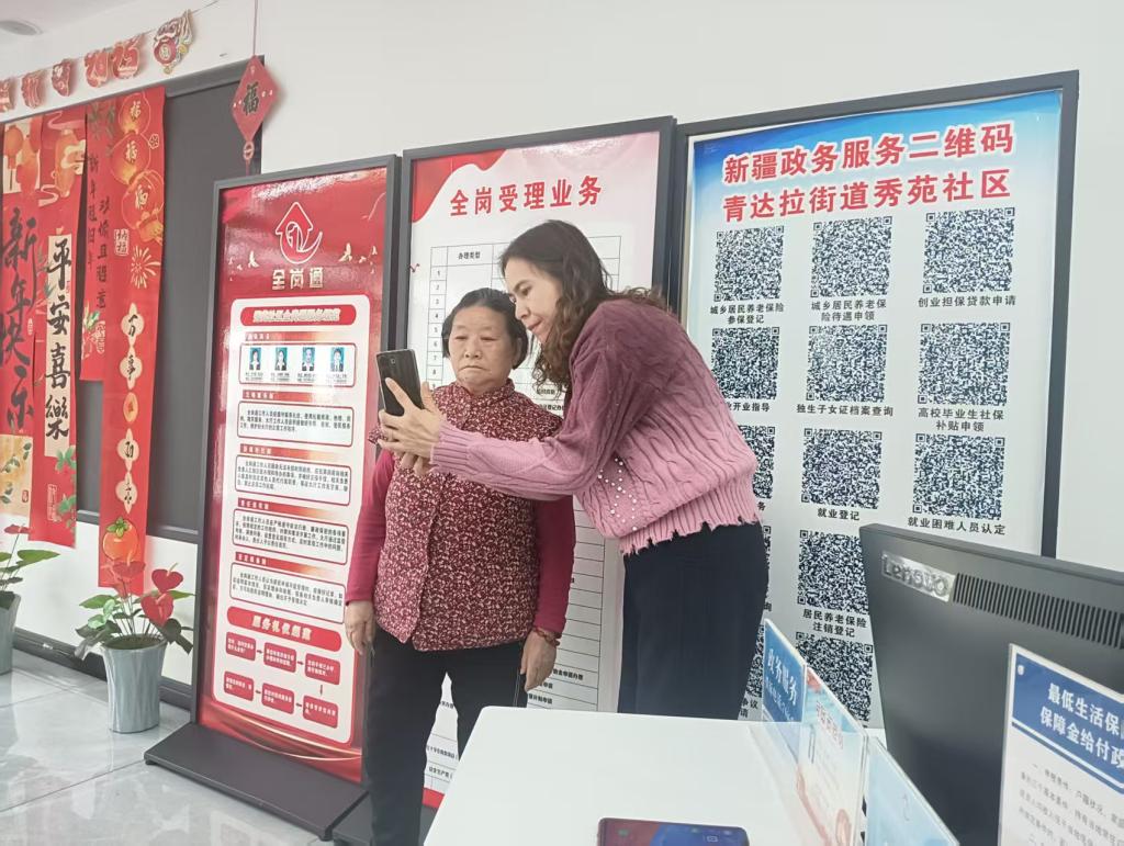 考虑到退休居民年龄、身体状况及操作能力的差异,社区提供了多元化的认证方式。对于熟悉智能手机操作的居民,工作人员耐心指导他们通过“新疆智慧人社”或微信小程序进行线上自助认证;对于行动不便的高龄、孤寡、残疾等特殊群体,安排专人提供上门认证服务,让居民足不出户即可完成认证。同时,还在服务大厅设立认证窗口,方便前来的居民现场认证,工作人员全程协助,确保认证工作快速、高效地进行。