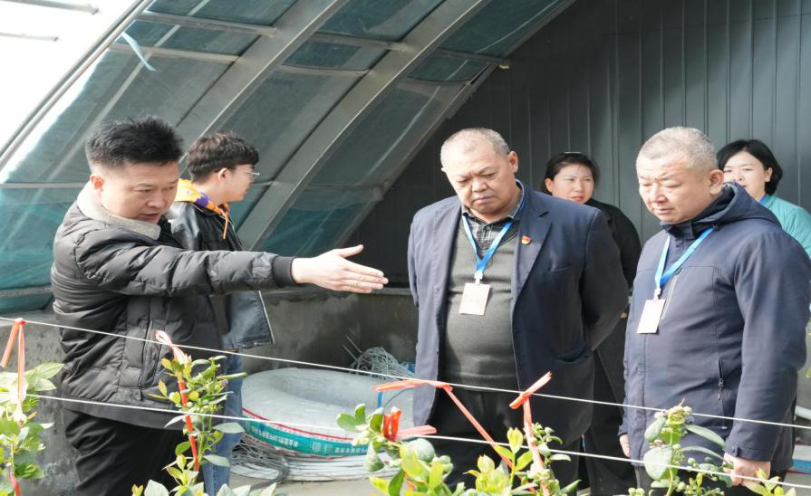 随后代表委员们一同去往智能温室大棚了解在大棚内种植草莓、蓝莓、圣女果、樱桃等作物的产业规模、技术应用及市场销售情况。该种植项目作为兵团特色农业的代表,具备先进的种植技术与成熟的产业链。代表委员们与种植户、技术人员深入交流,探讨蓝莓苗是否能够在贝乡种植并学习相关技术,带动贝乡农业产业结构优化升级,促进农民增收。
