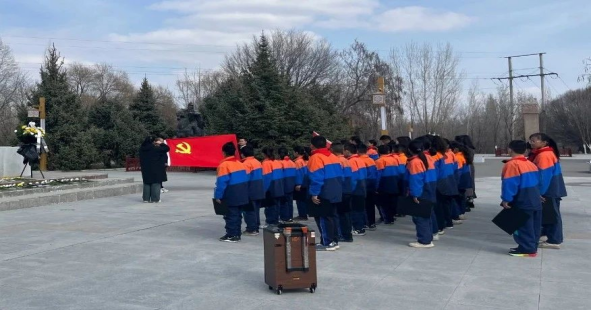 春风拂过苍松翠柏,烈士纪念碑巍然矗立。活动现场,全体师生、干部在陵园广场整齐列队,少先队员佩戴红领巾,手持白菊花束,神情庄重肃穆。社区代表与少先队员共同向烈士纪念碑敬献花篮,全体人员默哀一分钟,深切悼念为民族独立、人民解放献出生命的英雄儿女。