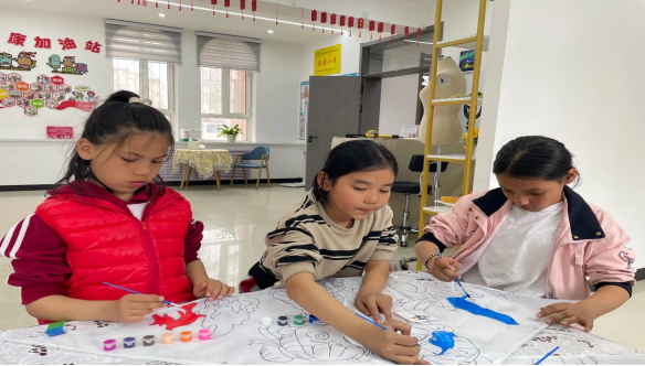 活动当天,社区干部为每个孩子精心准备了风筝、画笔和水彩颜料等工具,并详细讲解了风筝的绘画及色彩搭配技巧。孩子们纷纷挑选了自己心仪的风筝图案,有的选择了英勇威猛的卡通人物哪吒,有的选择了可爱灵动的小马宝莉,还有的选择了色彩斑斓的彩色大鱼等。他们拿起画笔,蘸上五彩斑斓的颜料,专注地为风筝绘上绚丽的色彩。