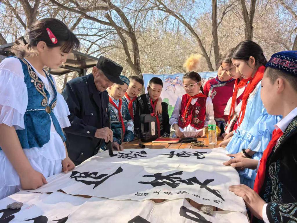 牧妃庄园作为集田园风光、民俗文化与生态旅游于一体的综合实践基地,为学生们提供了丰富的研学资源。在采摘园内,学生们亲手采摘果蔬,了解现代农业种植技术,体会“粒粒皆辛苦”的劳动价值。马术表演和“姑娘追”等哈萨克族传统民俗活动,让学生们感受到少数民族文化的独特魅力。活动中,学生们还穿上民族服饰,学习刺绣技艺,并在书法绘画展中创作作品,将艺术与民族文化深度融合。