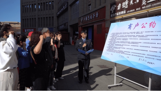 签约仪式结束后,博州市场监督管理局的工作人员带领现代中心城的商家们进行了庄严的宣誓。他们举起右手,誓言铿锵,表达了对诚信经营的坚定信念和对移风易俗行动的积极支持,为活动增添了浓厚的庄重氛围。