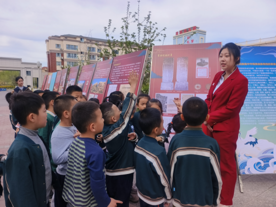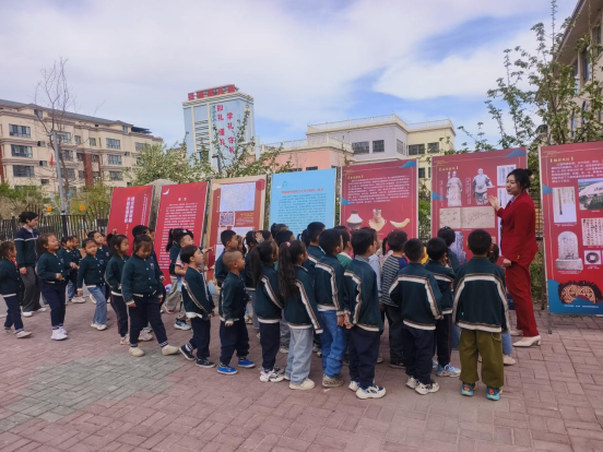 在阳光明媚的一天,南城区街道联合博州博物馆、滨河社区开展铸牢中华民族共同体意识新疆“四史”主题流动展活动。此次展览吸引了辖区蓓蕾幼儿园的小朋友们前来参观学习,让他们在幼小的心灵中播下民族团结的种子。