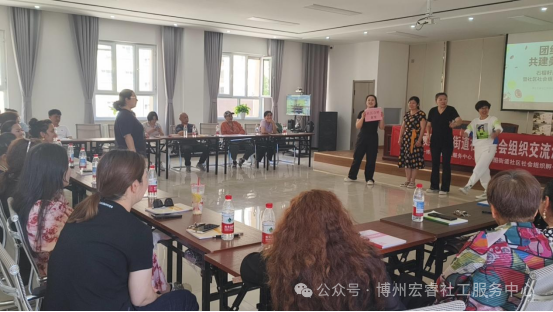 在“不倒森林”项目中,参与者们需要高度集中注意力,密切配合,充分展现了团队的协调能力。“爱的抱抱”项目则考验了大家的应变能力和团队协作,参与者们围成圈走动,根据主持人说的数字快速组成相应人数的团体,未组成者淘汰,现场气氛紧张而活跃。“社区资源猜猜乐”项目别具匠心,每人抽一张卡片,用肢体语言、表情或道具(现场简易物品)表演卡片内容,其他人猜。猜对后,持卡片人分享该资源的服务案例或亮点,这不仅加深了大家对社区现有资源的了解,还激发了协作联动的思路。