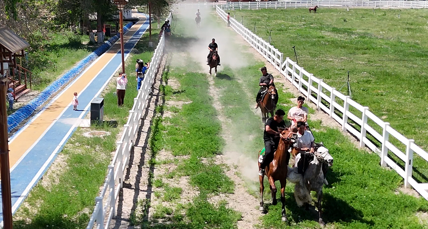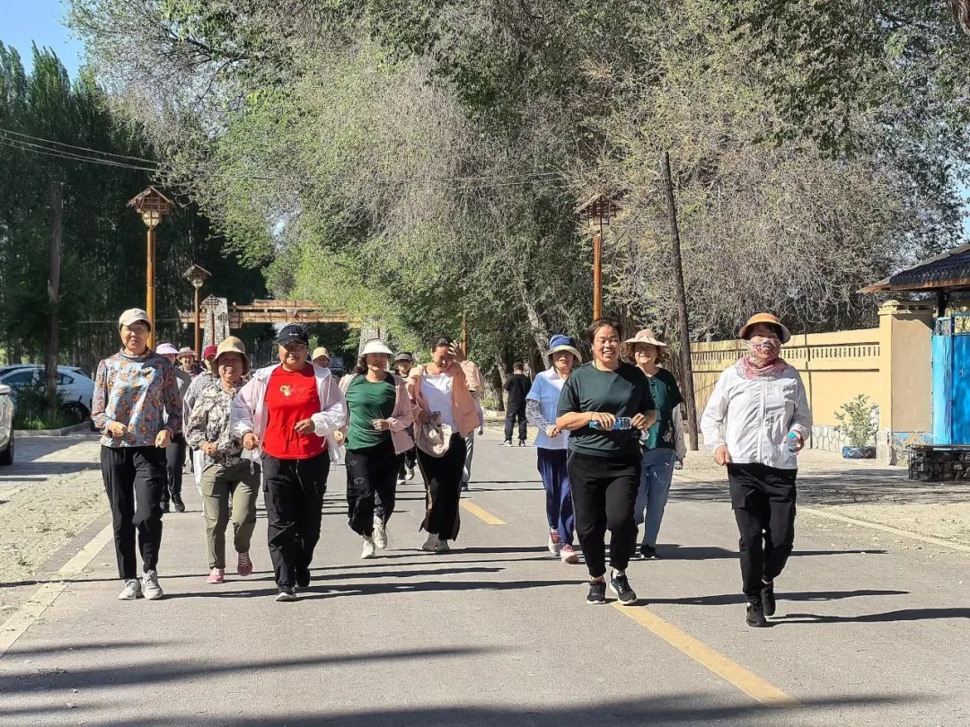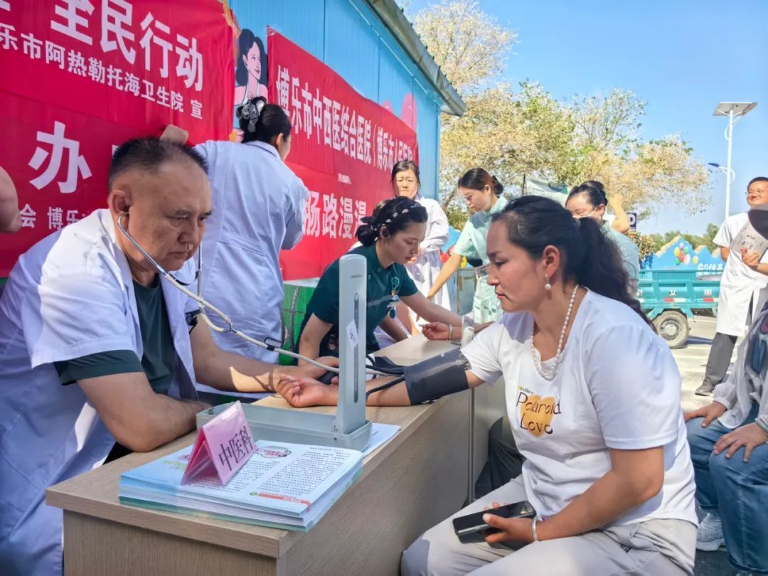 次日,“乡野逐风·步步向新”徒步赛沿阿热勒托哈村至大桥生态路线激情开跑,各村代表队以脚步丈量美丽乡村;“健康乡村行”义诊现场,博乐市中西医结合医院(博乐市人民医院)与阿热勒托海牧场卫生院专家,为居民送上健康关怀。赛马场上,四支村队骑手在传统民俗“叼羊”演绎中尽显马背豪情;阿吾勒亭内,汇聚地方风味的美食展示,带来“舌尖上的牧场”体验。