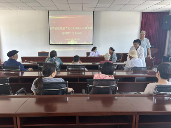 义诊现场,干部们热情地引导居民们有序进行各项检查,为大家详细解释义诊流程。医生为大家免费量血压、测血糖,耐心细致地为前来就诊居民提供诊疗服务,并针对每位居民的情况进行一对一健康咨询解答,适时提出科学饮食建议,避免过多摄入高盐、高糖和高脂肪的食物,建议老人可以通过合理膳食、散步等轻松的运动方式锻炼身体,增强免疫力,同时告知预约体检,鼓励他们树立积极、乐观的生活态度,养成健康生活的习惯,临走时张叔叔说道:“谢谢你们,我们老年人平时去医院不方便,这个义诊活动太好了。”