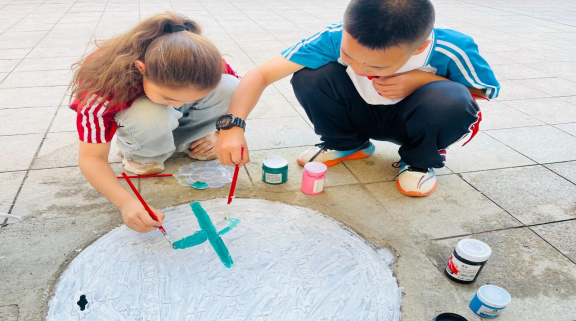 随后,孩子们早已按捺不住内心的兴奋,纷纷拿起画笔,瞬间化身为充满创意的“小小艺术家”。他们有的独自沉浸在自己的绘画世界里,全神贯注地勾勒着心中的美好画面,眼神中透露出专注与执着;有的则与身边的小伙伴相互协作,你一言我一语地讨论着绘画思路,分工合作,共同完成一幅作品。