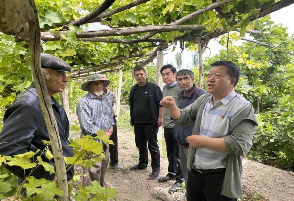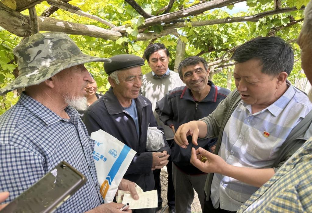 近日,乌图布拉格镇巴亚尔布拉格村葡萄种植户迎来一场“及时雨”——州农业农村局高级农艺师李双林受邀深入田间地头,为葡萄园叶片发黄问题“把脉问诊”,并系统指导夏季管护要点,以科技力量护航葡萄产业提质增效。