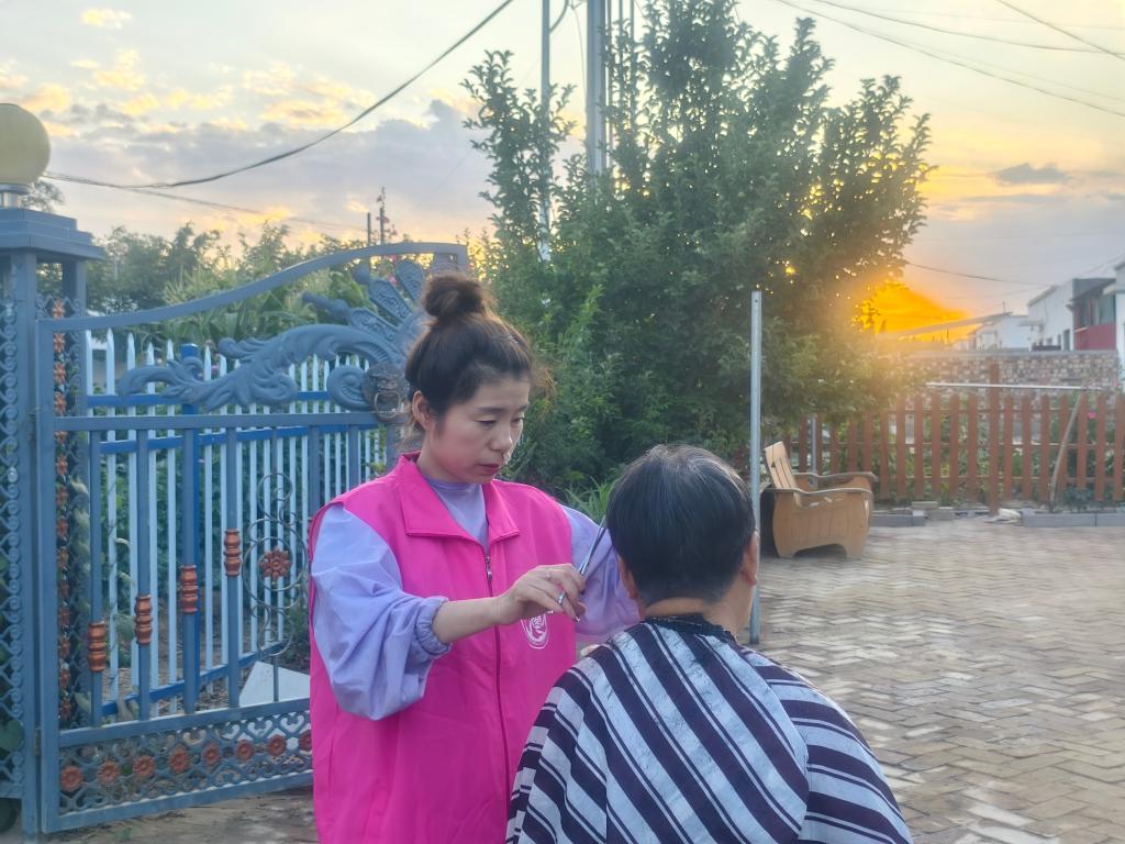 活动中,“靓发屋”受益人党众妍带着剪刀、电推子、围布等专业工具,走进老人家中提供“点对点”的免费理发服务。她根据老人的不同需求设计发型,一边娴熟地修剪头发,一边与老人唠家常,根据反馈及时调整理发方式,让老人们享受到舒适、满意的理发体验。在她的巧手下,老人们发型清爽利落,精神面貌焕然一新,纷纷对党众妍表示感谢。