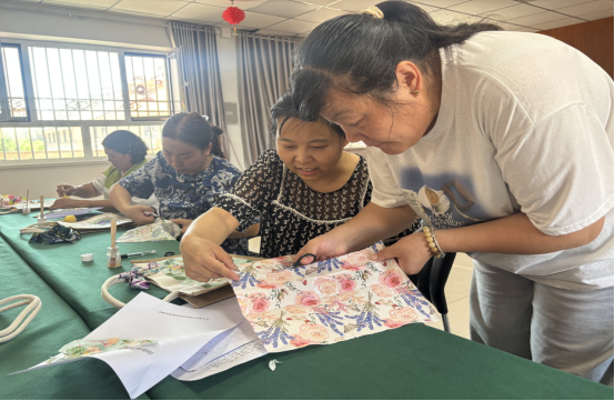 活动现场,社区干部准备好空白帆布包、贴纸、剪刀、丝巾等制作材料。在社区干部的耐心指导下,居民们纷纷拿起制作材料,充分发挥想象力,将心中的美好创意呈现在帆布包上。有的居民裁剪出花朵,象征着美好生活;有的则裁剪出可爱的卡通形象,童趣十足;还有的融入社区元素,展现出对社区的热爱。