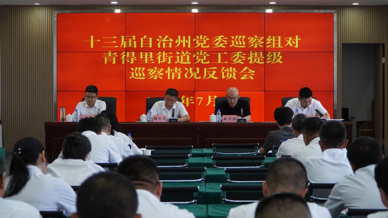 赵志远指出,青得里街道以党的创新理论为指导,管党治党、基层治理不断向好。但对照党中央决策部署和自治区、自治州党委工作要求还存在一定差距,并就存在的问题进行了反馈,主要是:贯彻落实新时代党的组织路线不够有力,督促指导基层党组织建设有欠缺;以人民为中心的发展理念树得不牢,推进基层依归治理、精细化治理仍有不足;把铸牢中华民族共同体意识作为各项工作主线的认识有差距,意识形态领域存在薄弱环节;统筹发展和安全不够有力,落实维护社会稳定常态化措施有欠缺;推动全面从严治党向纵深发展不够有力,防范化解廉洁风险存在短板;落实整改责任不到位,推动整改工作走深走实不彻底。