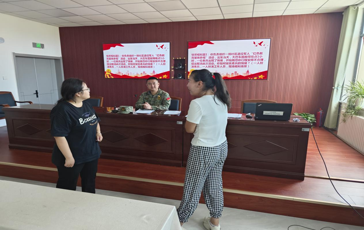 本次比拼围绕退役军人政策法规、优抚优待、就业创业、权益维护、困难帮扶等核心业务知识设置题目,分为闭卷考试、简答题、情景模拟题三个环节,14名参赛选手精神饱满、沉着应答,充分展现了扎实的业务功底和团队协作能力。