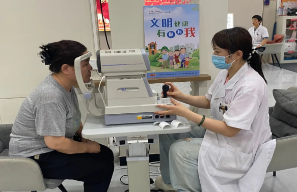 为了让活动落到实处,社区特别邀请了专业眼科机构的医生全程参与。在检查服务环节,医生们凭借专业功底为孩子们提供了全方位的眼部评估。她们一边操作专业仪器,一边认真记录孩子们的裸眼视力、散光度数等关键数据,建立起初步的眼部健康档案。并结合每个人的检查结果,逐一讲解日常防护的注意事项。